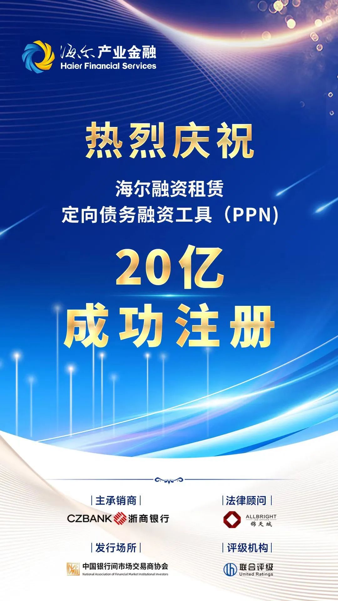 海尔融资租赁20亿PPN注册成功!