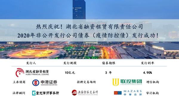 湖北省融资租赁发行10亿元“疫情防控债”