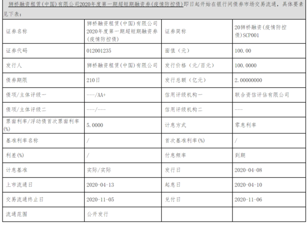 狮桥发行2020年度第一期超短期融资券(疫情防控债),发行总额2亿元